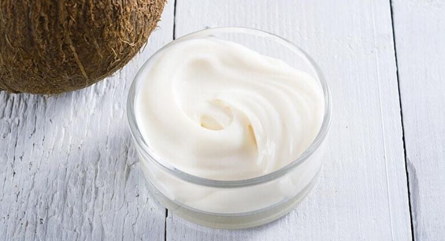 Abre la lata de crema de coco. Toma un tazón para batir y vacía el contenido de la lata a cucharadas evitando mezclar la crema con el aceite de coco líquido que se encuentra al fondo de la lata. No desperdicies el aceite, consérvalo y utiliza en otra receta.