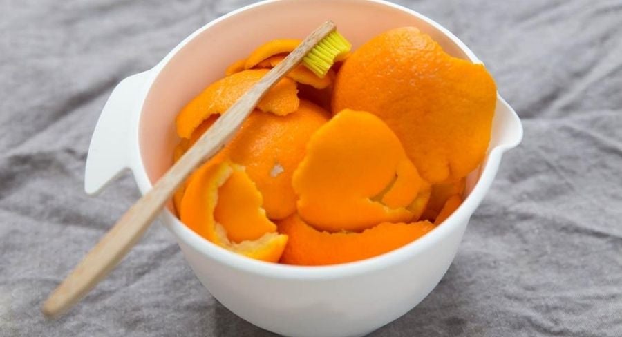 Coloca las cáscaras en un recipiente y agrega agua caliente. Talla con un cepillo para eliminar todos los rastros de grasa y suciedad.