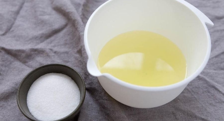 Mezcla 350 ml de agua de naranja con dos tazas de azúcar y vierte sobre las cáscaras.
