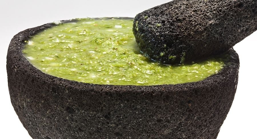 Retira primero el ajo, pélalo y colócalo en el molcajete, comienza a moler con el tejolote mientras vas incorporando la cebolla, los chiles, el cilantro, la sal y la pimienta, continua triturando hasta mezclar todos los ingredientes.