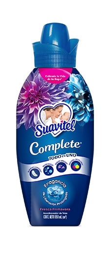 Consiente a tu familia extendiendo el delicioso aroma de larga duración del suavizante de telas Suavitel Complete Fresca Primavera en toda su ropa.
