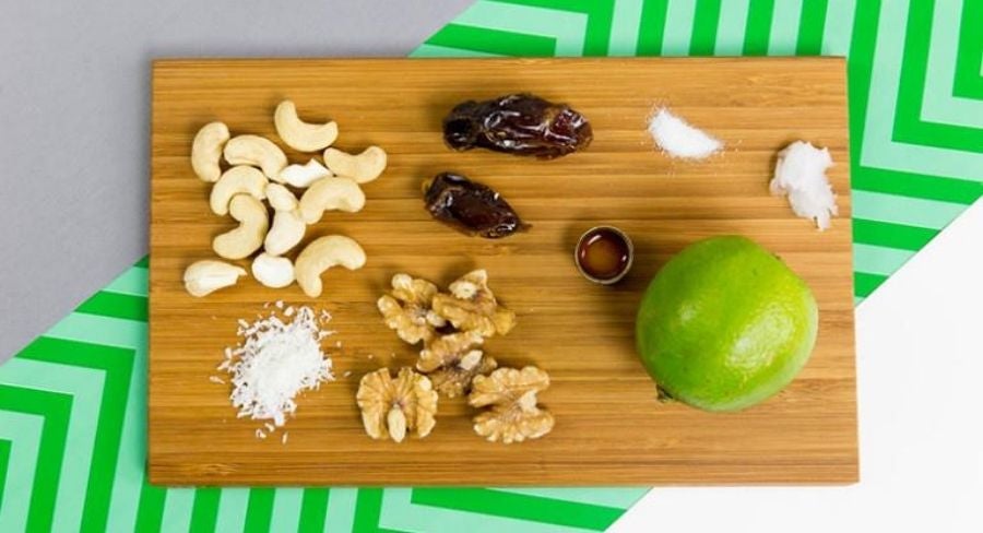 Coloca las nueces, limón, ralladura, néctar de agave, aceite de coco, sal y vainilla en el procesador de alimentos.