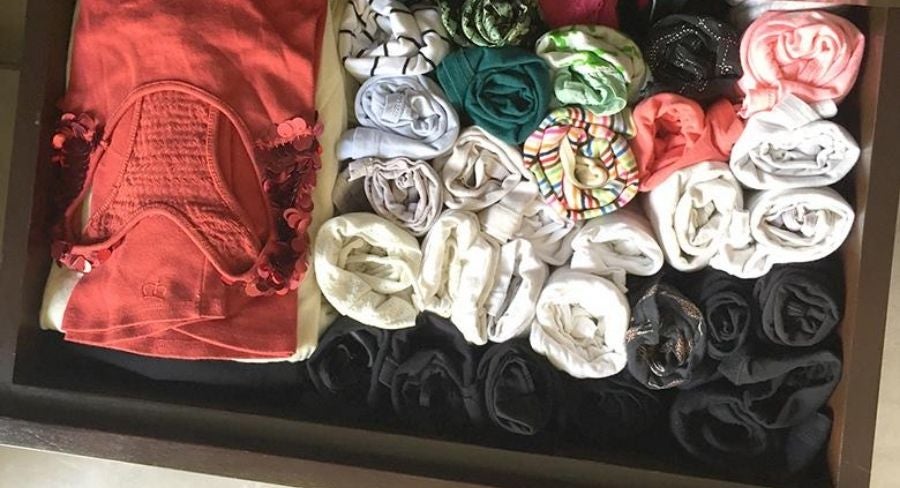 • Los pañuelos y chalinas pueden guardarse igualmente en rollos en un cajón.
