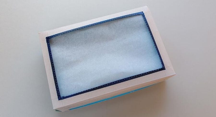 Corta un rectángulo en papel translúcido del tamaño de la parte frontal de la caja y pega con cinta en la parte interior. ¡Listo! Ya tienes tu casa para títeres. ¿Viste que fácil?