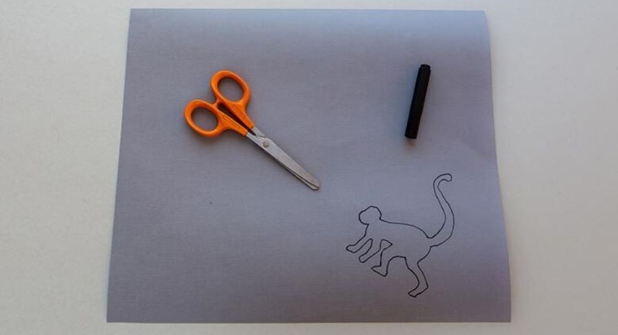 Ahora vamos a hacer los títeres. Toma un pedazo de papel negro o gris y dibuja los personajes que tu quieras. En esta ocasión yo elegí dibujar animales.