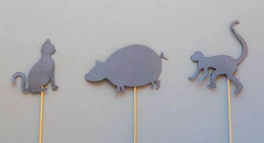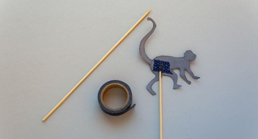 Corta los animales cuidadosamente, toma un palillo y pega con cinta.