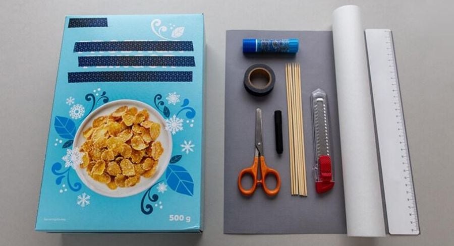 Toma la caja de cereal y con mucho cuidado desensambla.