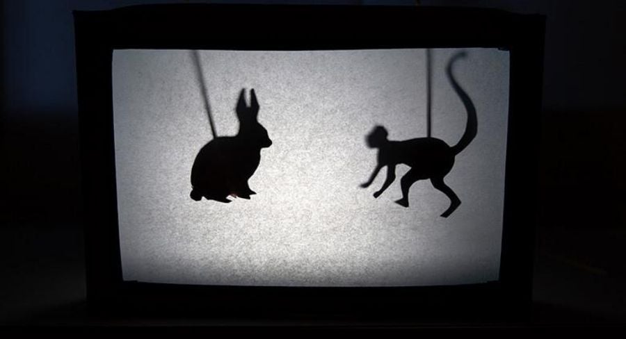 Coloca cuidadosamente la lámpara atrás de tu teatro para que tus títeres cobren vida.