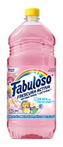 El Limpiador líquido multiusos Fabuloso Alternativa al Cloro Ultra Desinfectante 3 en un 1: limpia, desinfecta* y aromatiza tu hogar. Además, su fórmula te ayudará a remover manchas difíciles y eliminar virus y bacterias* dejando una duradera fragancia**.