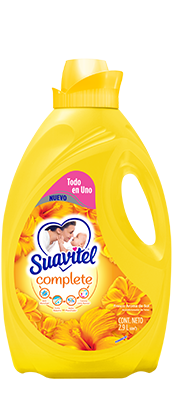 Suavitel® Complete® te ofrece una fórmula con fragancia concentrada que además te ayuda a prevenir manchas en la ropa, facilitarte el planchado y a proteger los colores y la forma de tu ropa.