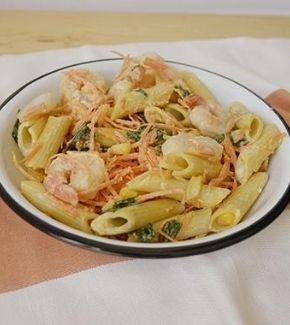 Receta de pasta con camarones, vegetales y crema ácida