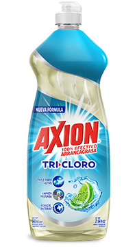 • Axion Tricloro con Triple Poder Activo remueve grasa y bacterias*.