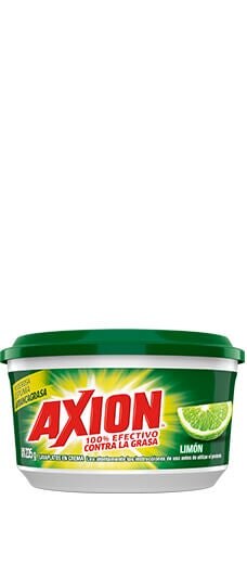 Axion® Limón es el producto líder en el mercado. Su efectividad y eficacia arranca la grasa mas pegada y los malos olores fácilmente, mientras deja en tus platos un agradable aroma a limón.