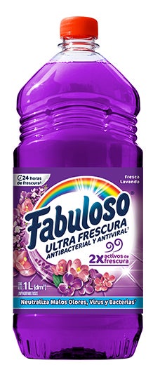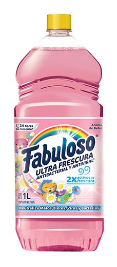 Nuevo Fabuloso® Antibacterial, su fórmula elimina el 99.99% de virus y bacterias para que mantengas tu hogar limpio y seguro mientras proteges a tu familia.
